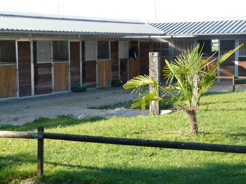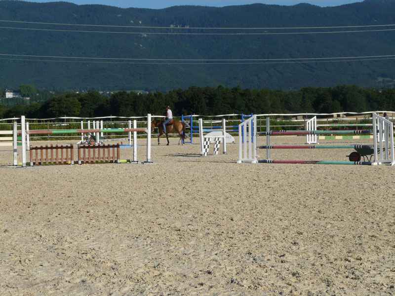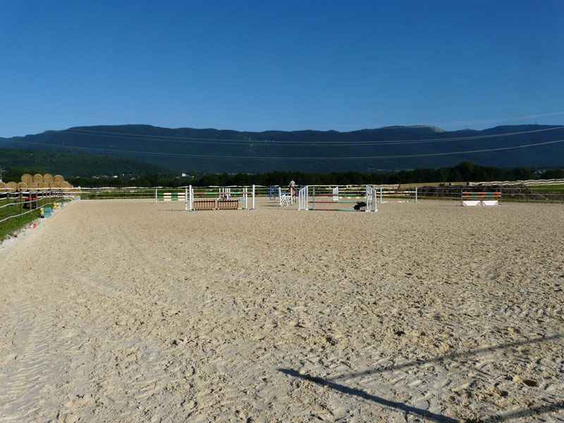 Le manège est très clair et aéré. Il est équipé de stores coupe-vent qui peuvent être relevés dès que le temps le permet, ce qui permet un maximum de fraîcheur en été. Le sol en sable de silice nous donne entière satisfaction.